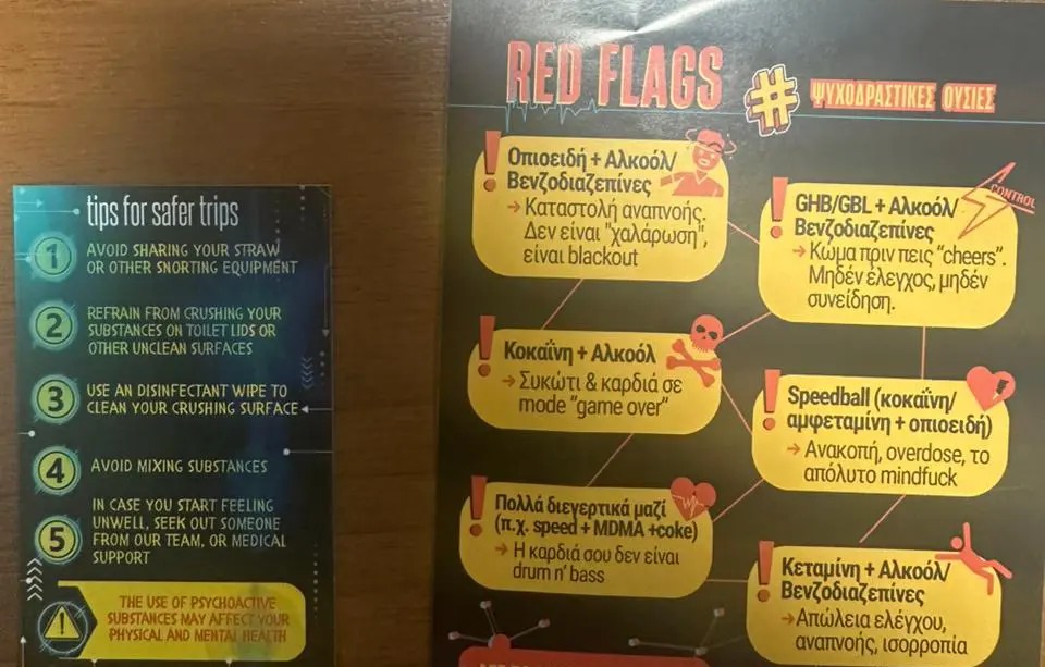 Στο σπίτι του 49χρονου που παρουσιαζόταν ως DJ της techno μουσικής σκηνής βρέθηκε και φυλλάδιο με οδηγίες για την ασφαλή χρήση συνθετικών, ενώ στο κάτω μέρος του υπάρχει η φράση: «Άσε το μιξάρισμα στον DJ».