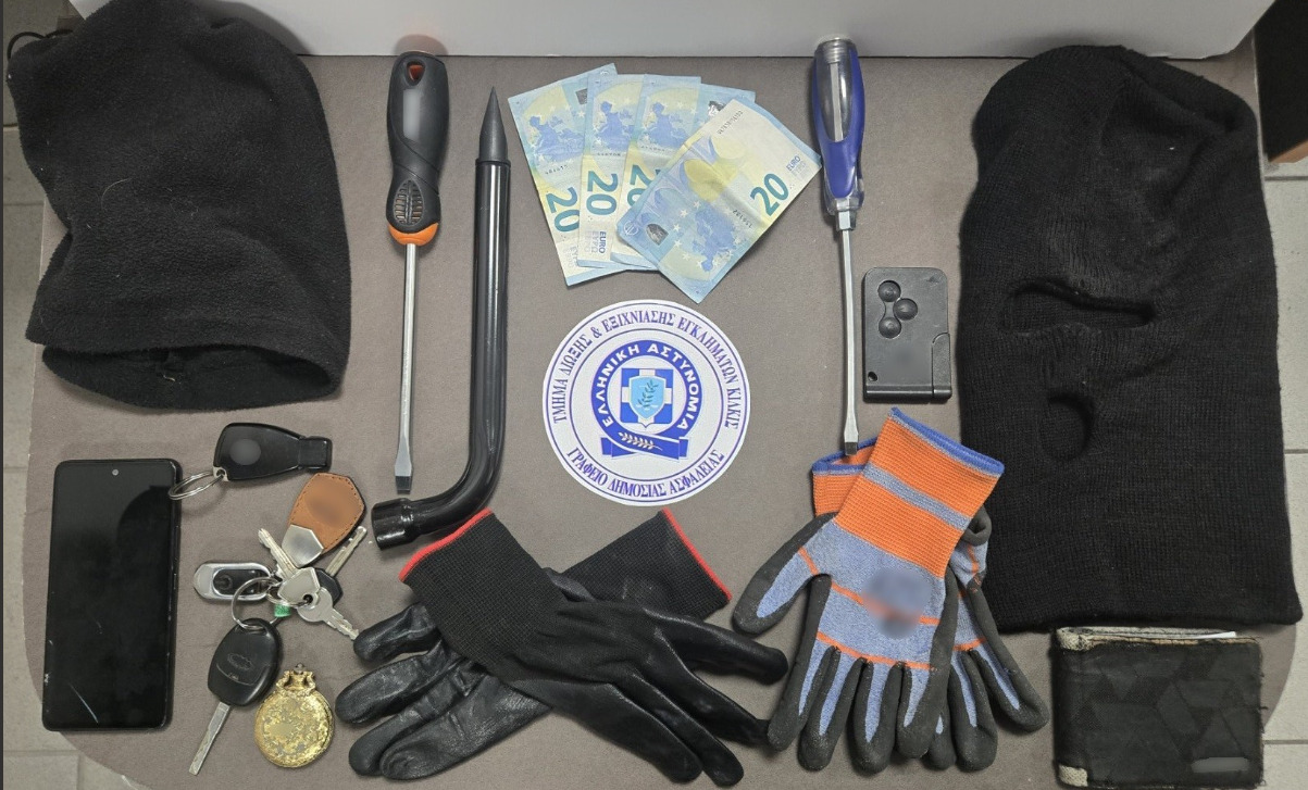 Επιπλέον στην κατοχή των δύο ανδρών βρέθηκαν και κατασχέθηκαν διαρρηκτικά εργαλεία, γάντια, κουκούλα full-face, κλειδιά αυτοκινήτων, 1 κινητό τηλέφωνο και το χρηματικό ποσό των 80 ευρώ.