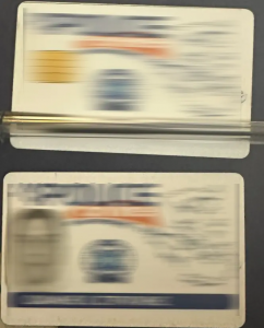 Ακόμα, στην κατοχή του βρέθηκε υπηρεσιακή κάρτα μηχανογραφικού συστήματος που είχε απωλέσει αστυνομικός, πάνω στην οποία ο δράστης είχε επικολλήσει φωτογραφία του.