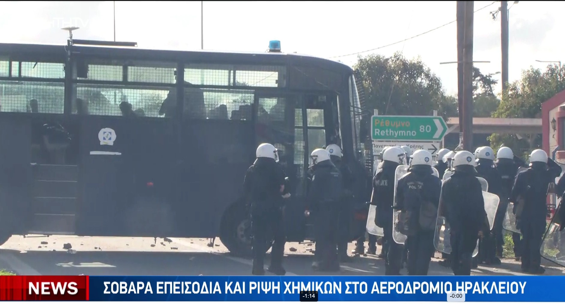Ένταση σημειώθηκε λίγο πριν τη μία το μεσημέρι της Δευτέρας (8/12) στη λεωφόρο Σενετάκη, κατά τη διάρκεια των κινητοποιήσεων των αγροτοκτηνοτρόφων στο αεροδρόμιο Ηρακλείου.