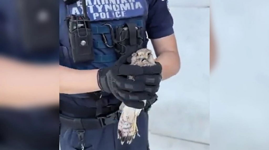 Ένα μωρό-γεράκι του είδους βραχοκιρκίνεζο που βρέθηκε τραυματισμένο στη ΓΑΔΑ έσωσε ένας αστυνομικός που εκτελούσε σκοπιά στο κτίριο της Γενικής Αστυνομικής Διεύθυνσης Αττικής.