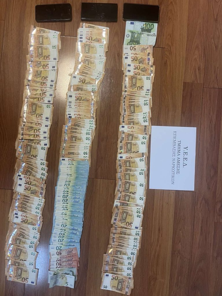 Ακόμα, στο εσωτερικό κρύπτης στο ταμπλό αυτοκινήτου του 38χρονου, εντοπίστηκαν επιμελώς κρυμμένα το χρηματικό ποσό των -9.750- ευρώ και -114- νάιλον συσκευασίες εμπεριέχουσες -64,5- γραμμ. κοκαΐνης.