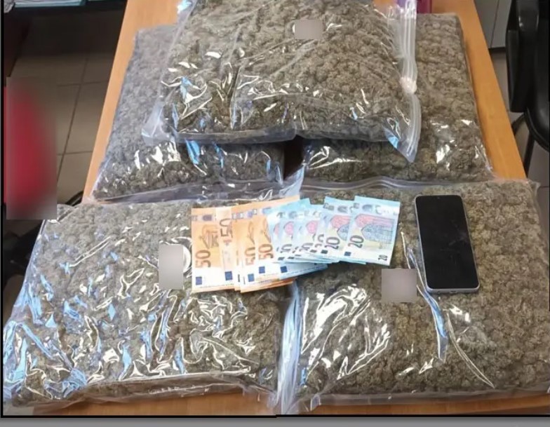 Ειδικότερα, οι αστυνομικοί προέβησαν σε έλεγχο του προαναφερόμενου, ο οποίος αποβιβάστηκε από υπεραστικό λεωφορείο και παρέλαβε ταξιδιωτικό σάκο από τον χώρο αποσκευών, κατά τον οποίο βρέθηκαν μέσα στο σάκο -5- νάιλον συσκευασίες με ποσότητες ακατέργαστης κάνναβης, συνολικού βάρους -5.189- γραμμαρίων, οι οποίες κατασχέθηκαν.