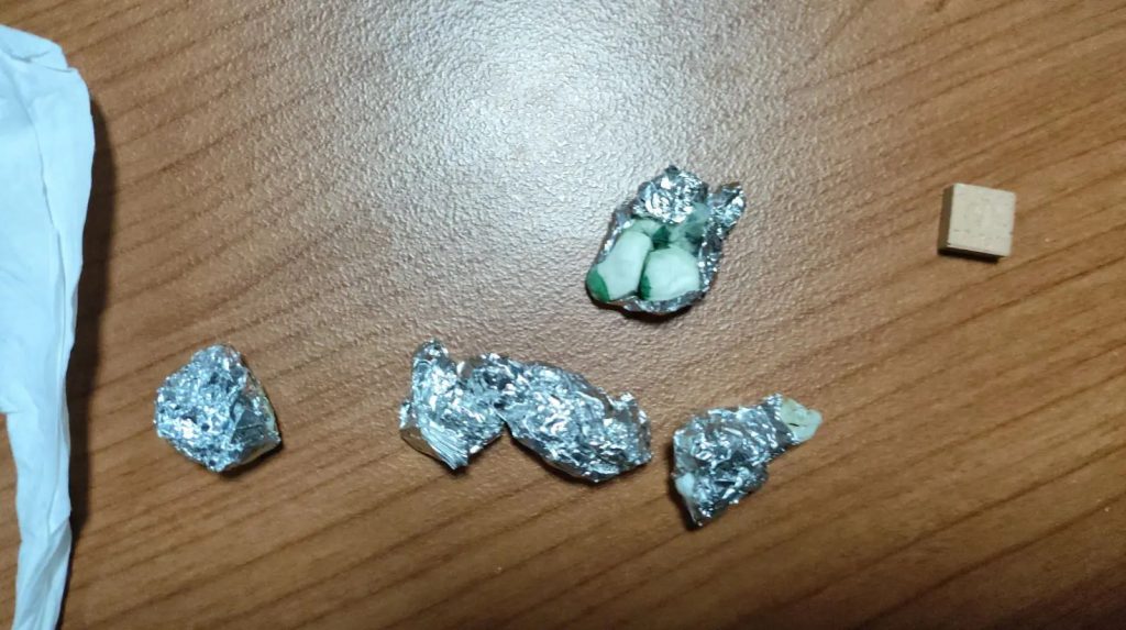 Ειδικότερα, αστυνομικοί της ανωτέρω Υπηρεσίας, εντόπισαν τους κατηγορούμενους πρώτες πρωινές ώρες, εξωτερικά καταστήματος στην περιοχή Γκάζι της Αθήνας και σε σωματικές έρευνες που πραγματοποιήθηκαν, βρέθηκαν και κατασχέθηκαν μαχαίρι συνολικού μήκους -28,5- εκατοστών, καθώς και αποκρυμμένες σε εσώρουχο και πορτοφόλι, συσκευασίες με κοκαΐνη συνολικού μικτού βάρους -3,92- γραμμάρια και δισκίο ναρκωτικής ουσίας.