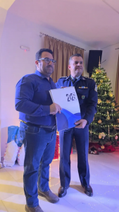 Σε Χριστουγεννιάτικη εκδήλωση που διοργάνωσε ο Δήμος Αγαθονησίου, για τους επτά (7) μαθητές διαφόρων βαθμίδων εκπαίδευσης του νησιού (Λύκειο, Δημοτικό, Νηπιαγωγείο), παρευρέθηκε ο Διευθυντής της Διεύθυνσης Αστυνομίας Σάμου κ. Μπράνης Γεώργιος, όπου ο ίδιος, μεταξύ άλλων, μοίρασε δώρα και αναμνηστικές ατζέντες της Ελληνικής Αστυνομίας, στους μαθητές.