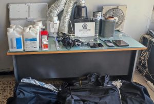 - πλήρως εξοπλισμένο εργαστήριο καλλιέργειας κάνναβης αποτελούμενο από ζυγαριές, ψηφιακά θερμόμετρα, φυσούνες εξαερισμού, ανεμιστήρες και αφυγραντήρες,