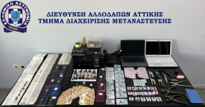 Οι αρχές εντόπισαν ένα πλήρως εξοπλισμένο εργαστήριο κατάρτισης πλαστών ταξιδιωτικών εγγράφων, ενώ κατά τη διάρκεια της έρευνας, μεταξύ άλλων, βρέθηκαν και κατασχέθηκαν μηχανολογικός εξοπλισμός εργαστηρίου, καθώς και πλήθος πλαστών ταξιδιωτικών εγγράφων.
