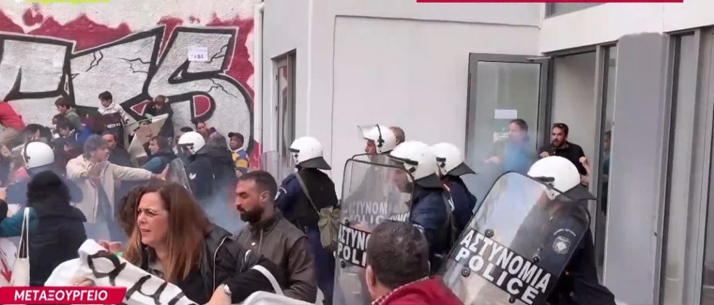 Άγρια επεισόδια σημειώθηκαν στο Μεταξουργείο, έξω από το κτίριο της Διεύθυνσης Πρωτοβάθμιας Εκπαίδευσης.