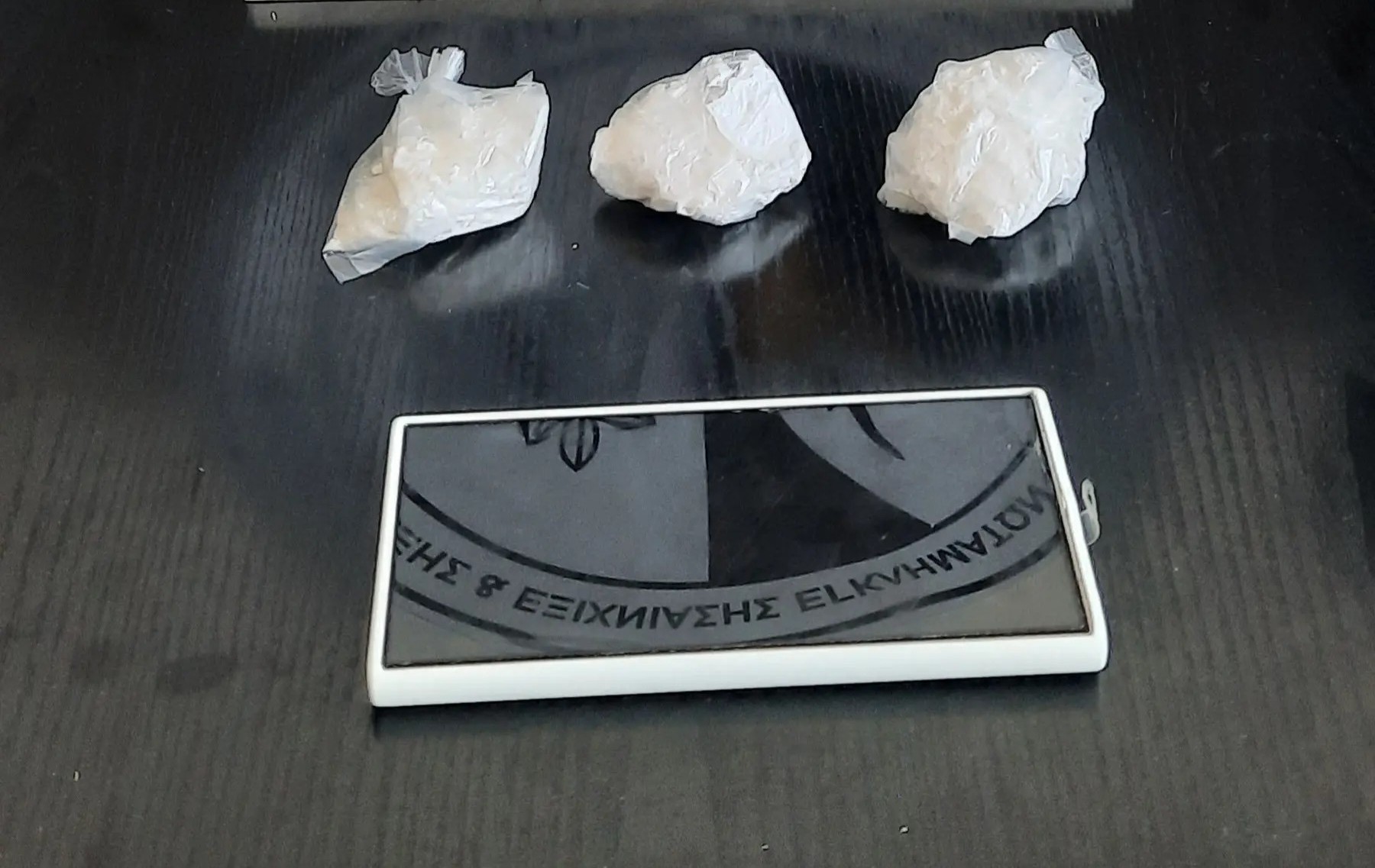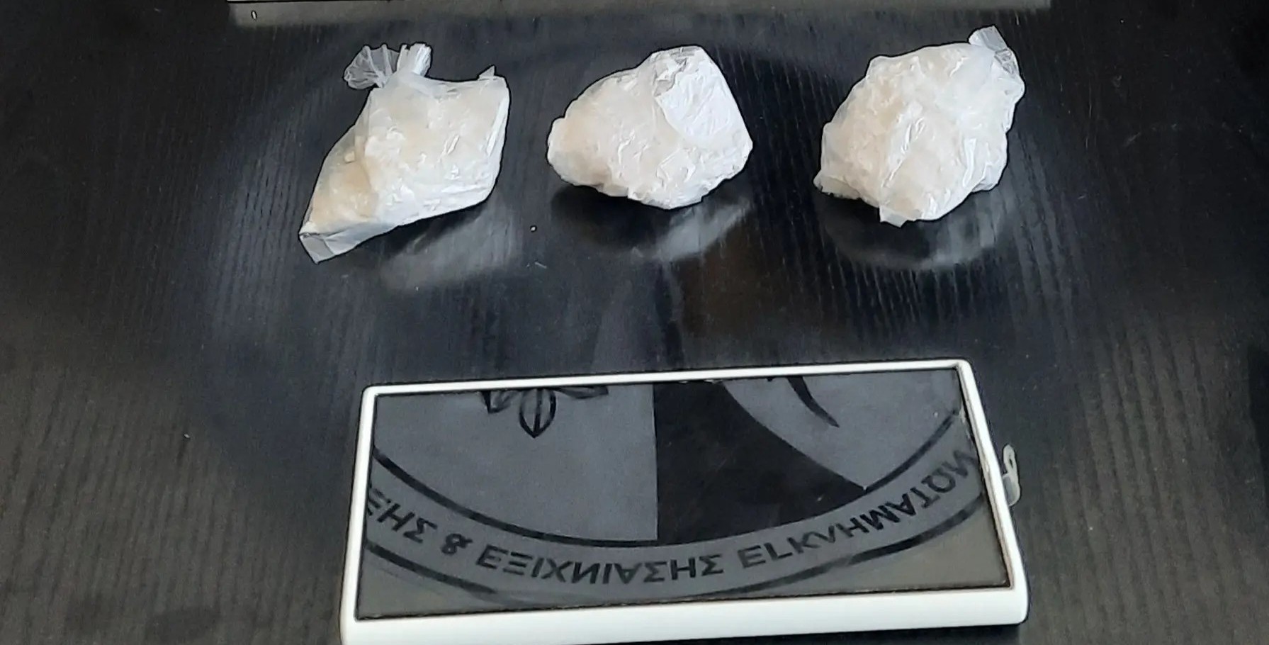 Κατά τη διάρκεια της έρευνας, βρέθηκαν επιμελώς κρυμμένες και κατασχέθηκαν  τρείς συσκευασίες οι οποίες περιείχαν συνολικά 61 γραμμάρια κοκαΐνης και κινητό τηλέφωνο.