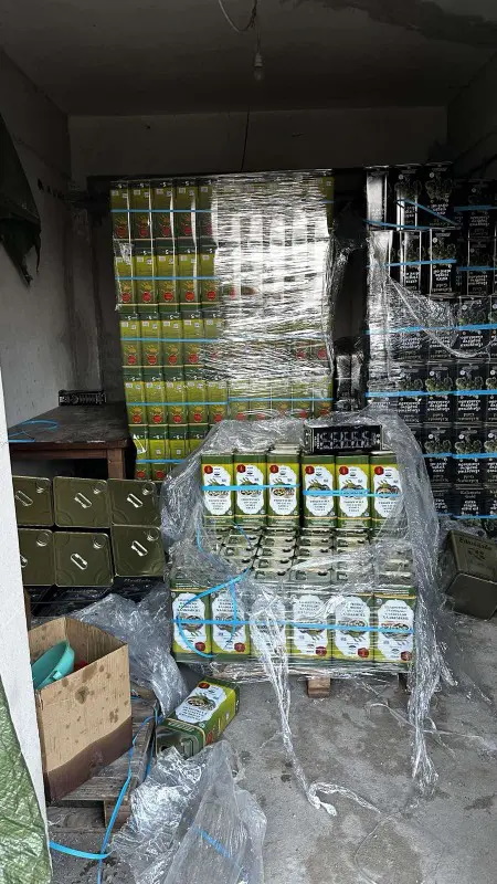 Κατά τις έρευνες, εντοπίστηκε εργαστήριο παρασκευής και τυποποίησης νοθευμένων ελαίων, όπου τα μέλη της εγκληματικής οργάνωσης, τουλάχιστον από τον Νοέμβριο του 2024, πραγματοποιούσαν τη νοθεία ηλιελαίου, στο οποίο πρόσθεταν χρωστικές και αρωματικές ουσίες, προκειμένου να προσομοιάζει με ελαιόλαδο.
