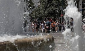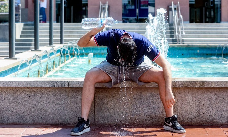 Στην Ισπανία το θερμόμετρο έφθασε τους 44 βαθμούς, ενώ το περασμένο 24ωρο άγγιξε τους 46, θερμοκρασία-ρεκόρ. Τα πάρκα και τα σιντριβάνια γέμισαν κόσμο που απολάμβανε το δροσερό νερό.