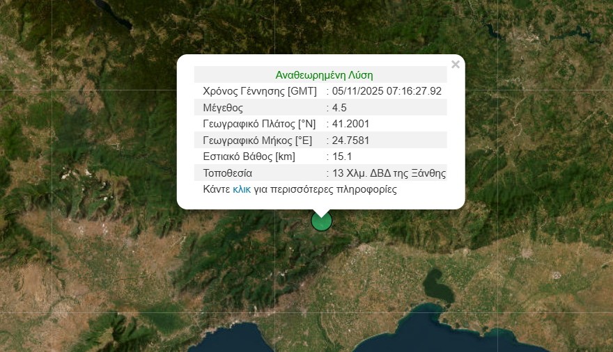Ισχυρός σεισμός έγινε το πρωί της Τετάρτης στην Ξάνθη.
