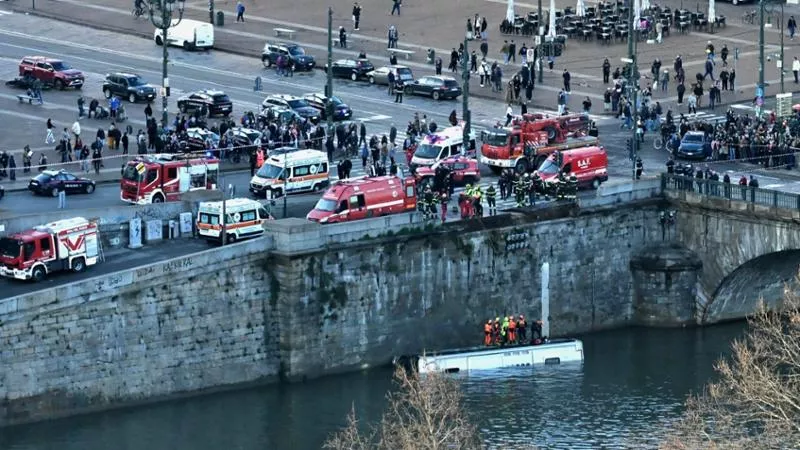 Σύμφωνα με αυτόπτη μάρτυρα το λεωφορείο ξαφνικά άρχισε να πηγαίνει ευθεία προς το κενό, με αποτέλεσμα να πέσει στον ποταμό Πάδο στην Piazza Vittorio Veneto αφού έσπασε το κιγκλίδωμα της γέφυρας και έπεσε στο νερό.