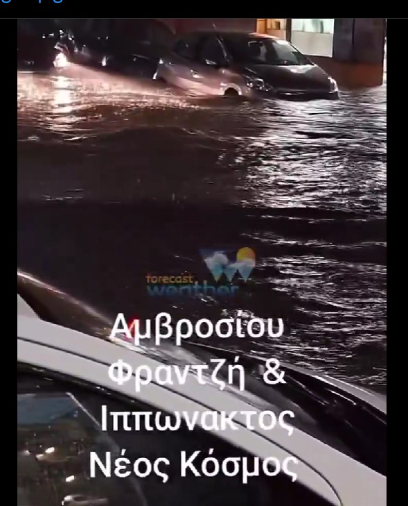 ⚠️Σοβαρά πλημμυρικά φαινόμενα στο νέο κόσμο Αττικής αυτοκίνητα έχουνε πλημμυρίσει όπως και μαγαζιά .