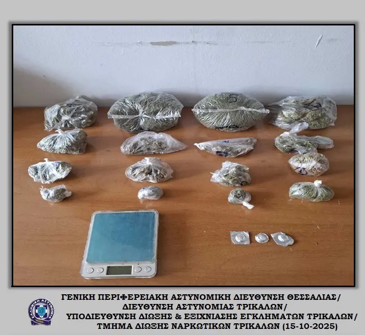 Συνελήφθη, χθες (14-10-2025) το μεσημέρι στην ευρύτερη περιοχή του Μουζακίου Καρδίτσας, από αστυνομικούς του Τμήματος Δίωξης Ναρκωτικών της Υποδιεύθυνσης Δίωξης και Εξιχνίασης Εγκλημάτων Τρικάλων, ένας ημεδαπός άνδρας, σε βάρος του οποίου σχηματίστηκε δικογραφία για παράβαση της νομοθεσίας περί ναρκωτικών.