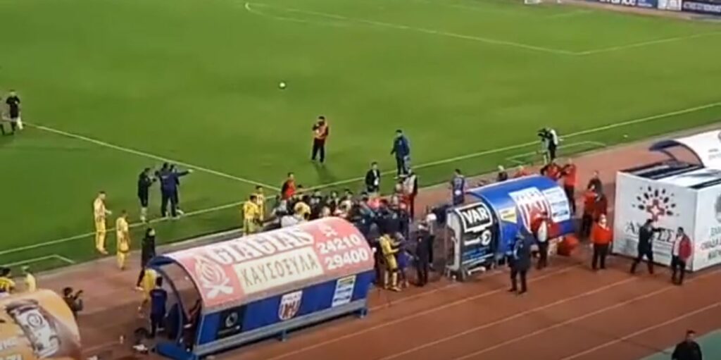 Σοβαρά επεισόδια σημειώθηκαν κατά τη διάρκεια της αναμέτρησης του Βόλου κόντρα στον Άρη, καθώς οπαδοί των φιλοξενούμενων εισέβαλαν στο γήπεδο, προσέγγισαν τα επίσημα και το παιχνίδι διεκόπη.