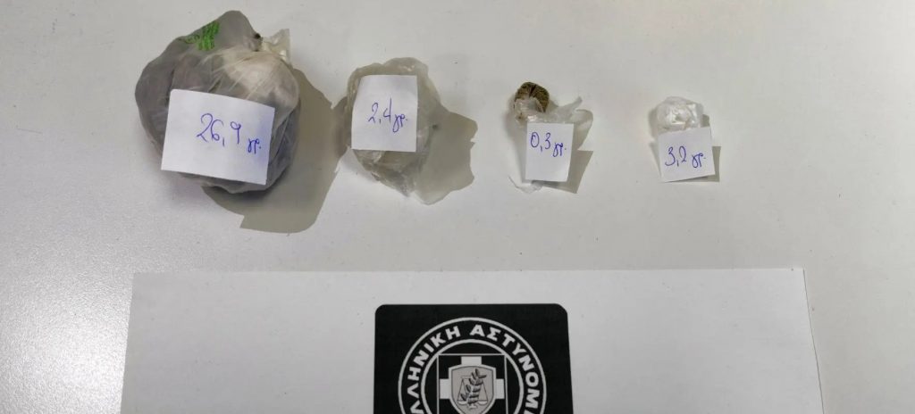 Κατασχέθηκαν συνολικά 3,2 γραμμάρια κοκαΐνης και 29,6 γραμμάρια ακατέργαστης κάνναβης.