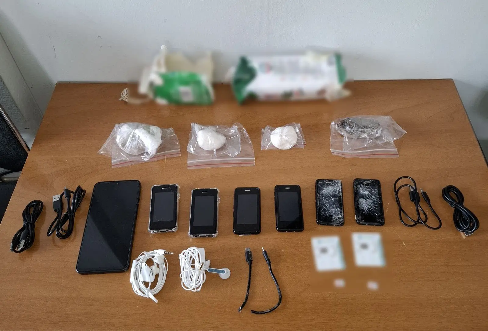 Οι προαναφερόμενοι -3- αλλοδαποί συνελήφθησαν και σε βάρος τους σχηματίστηκε δικογραφία για παραβάσεις των νομοθεσιών περί ναρκωτικών και περί όπλων και για ηθική αυτουργία σε εισαγωγή κινητού τηλεφώνου σε σωφρονιστικό κατάστημα.