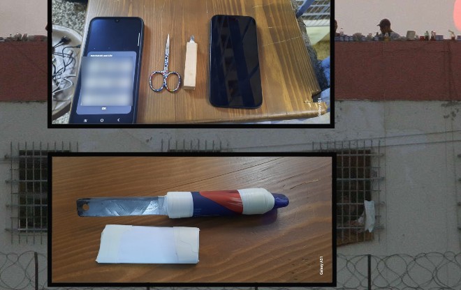 βρέθηκαν και κατασχέθηκαν κινητό τηλέφωνο, αυτοσχέδιο αιχμηρό αντικείμενο, ψαλιδάκι.