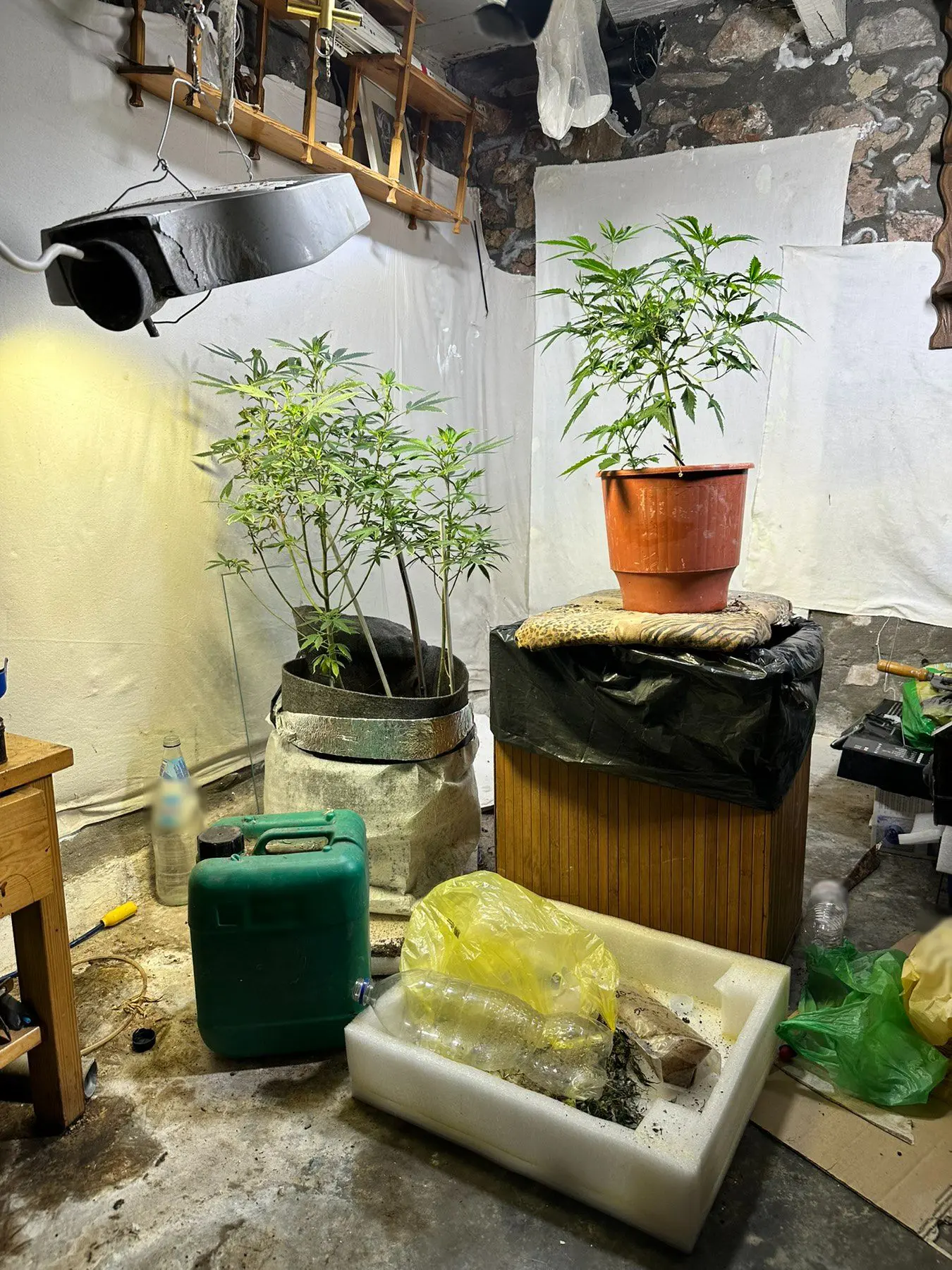 Ειδικότερα, μετά από κατάλληλη αξιολόγηση και αξιοποίηση στοιχείων, πραγματοποιήθηκε έρευνα παρουσία δικαστικού λειτουργού, σε οικία όπου διαμένει ο 53χρονος στην παραπάνω περιοχή, στο πλαίσιο της οποίας, σε δύο (2) ειδικά διαμορφωμένους χώρους, σε βεράντα και αποθήκη βρέθηκαν κατά περίπτωση και κατασχέθηκαν: