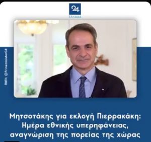 Ο Κυριάκος Μητσοτάκης συνεχάρη τον Κυριάκο Πιερρακάκη για την εκλογή του, σημειώνοντας ότι η σημερινή είναι «μια ημέρα υπερηφάνειας για τη χώρα, για την κυβέρνηση και όλους τους πολίτες».