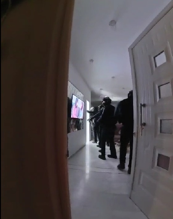 Ακολουθούν έρευνες στο εσωτερικό των σπιτιών, ενώ στο βίντεο φαίνεται να εντοπίζεται και αυτοσχέδιο θερμοκήπιο με καλλιέργεια κάνναβης.