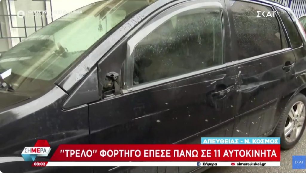 Ο οδηγός όχι μόνο δεν σταμάτησε αλλά συνέχισε ανενόχλητος την πορεία του προς την οδό Σπινθάρου, ξηλώνοντας καθρέφτες, προφυλαχτήρες και προκαλώντας φθορές στις πόρτες των αυτοκινήτων.