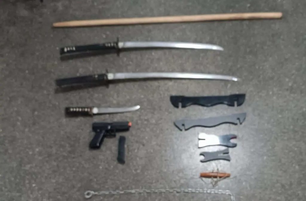 Ο αλλοδαπός συνελήφθη από αστυνομικούς του Τμήματος Πρόληψης και Καταστολής Εγκληματικότητας που κλήθηκαν στο σημείο, ενώ σε έρευνα που ακολούθησε στο αυτοκίνητό του εντοπίστηκαν άλλα δύο σπαθιά (τύπου κατάνα), ένα πιστόλι ρέπλικα (με ελατήριο που εκτοξεύει πλαστικές μπίλιες), ένα ξύλινο δόρυ (yari bokken) κι ένα ζευγάρι γάντια πολεμικών τεχνών.