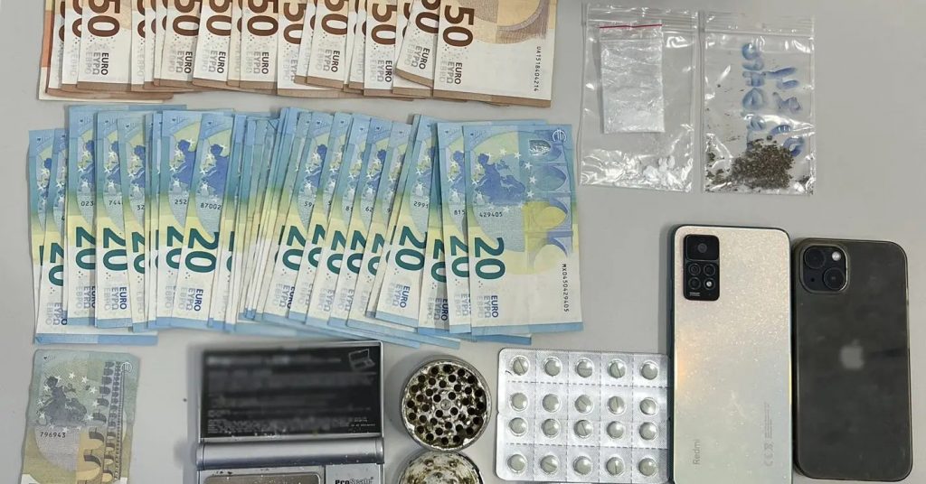 Κατασχέθηκαν μεταξύ άλλων, 77γραμμάρια κάνναβης, 22 ναρκωτικά δισκία, 1,8 γραμμάρια κοκαΐνης και 1.785 ευρώ.