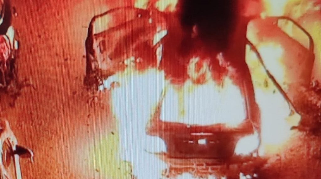 Το υπηρεσιακό αυτοκίνητο καταστράφηκε ολοσχερώς, ενώ λόγω της υψηλής θερμοκρασίας από την καύση του προκλήθηκαν φθορές σε τρία παρακείμενα οχήματα ιδιωτών.