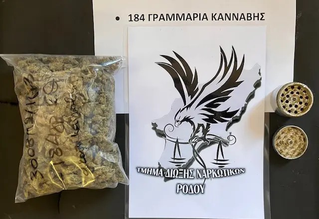 Κατασχέθηκαν 184 γραμμάρια ακατέργαστης κάνναβης.