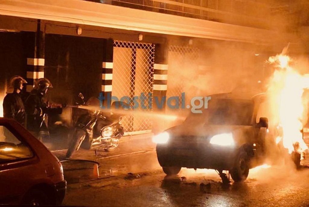 Ούτε ένα, ούτε δύο, αλλά συνολικά δέκα αυτοκίνητα τυλίχθηκαν στις φλόγες τα ξημερώματα της Δευτέρας στη Θεσσαλονίκη.