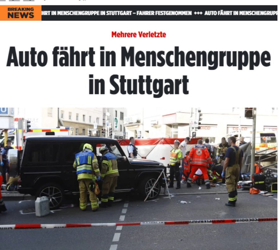 Συναγερμός σήμανε στις Αρχές της Στουτγκάρδης, καθώς αυτοκίνητο SUV έπεσε πάνω σε πλήθος, σε μια διάβαση πεζών προς τη στάση του τραμ Όλγκαεκ, σύμφωνα με την αστυνομία.