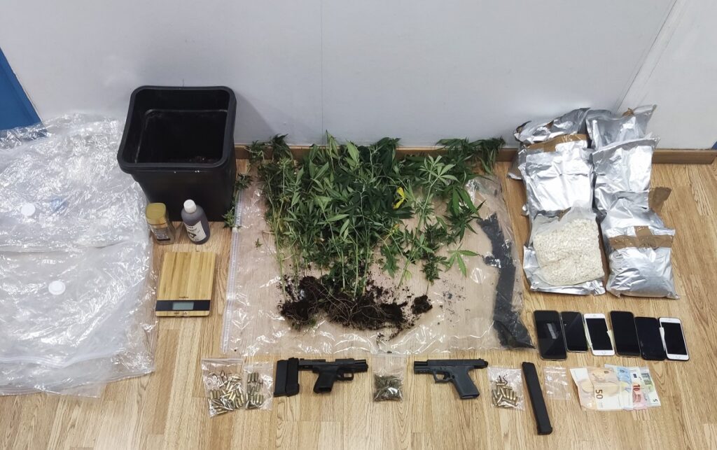 Συγκεκριμένα, εντός οικίας στο Πόρτο Ράφτη κατελήφθησαν ο 28χρονος, ο 30χρονος και ο 38χρονος, ενεργώντας και για λογαριασμό του έτερου 30χρονου, να κατέχουν :