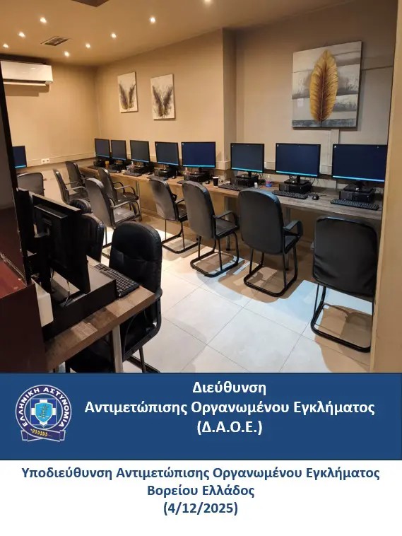 Από την Υποδιεύθυνση Αντιμετώπισης Οργανωμένου Εγκλήματος Βορείου Ελλάδος, εντοπίστηκε πρωινές ώρες της Πέμπτης, 4 Δεκεμβρίου 2025, στη Θεσσαλονίκη, κατάστημα υγειονομικού ενδιαφέροντος, εντός του οποίου διεξάγονταν παράνομα τυχερά παίγνια.
