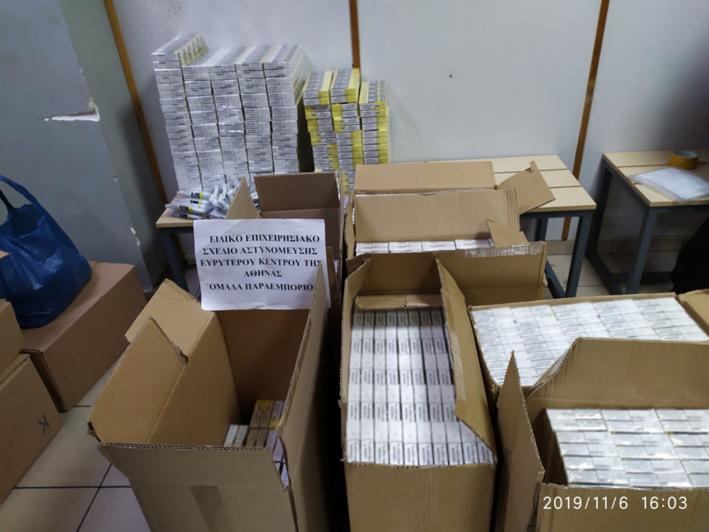 Μετά από έρευνες, παρουσία δικαστικού λειτουργού, στις δύο αποθήκες, βρέθηκαν συνολικά και κατασχέθηκαν 7.820 πακέτα τσιγάρα και 790 συσκευασίες καπνού, τα οποία δεν έφεραν την προβλεπόμενη από το νόμο ταινία ειδικού φόρου κατανάλωσης καπνού.