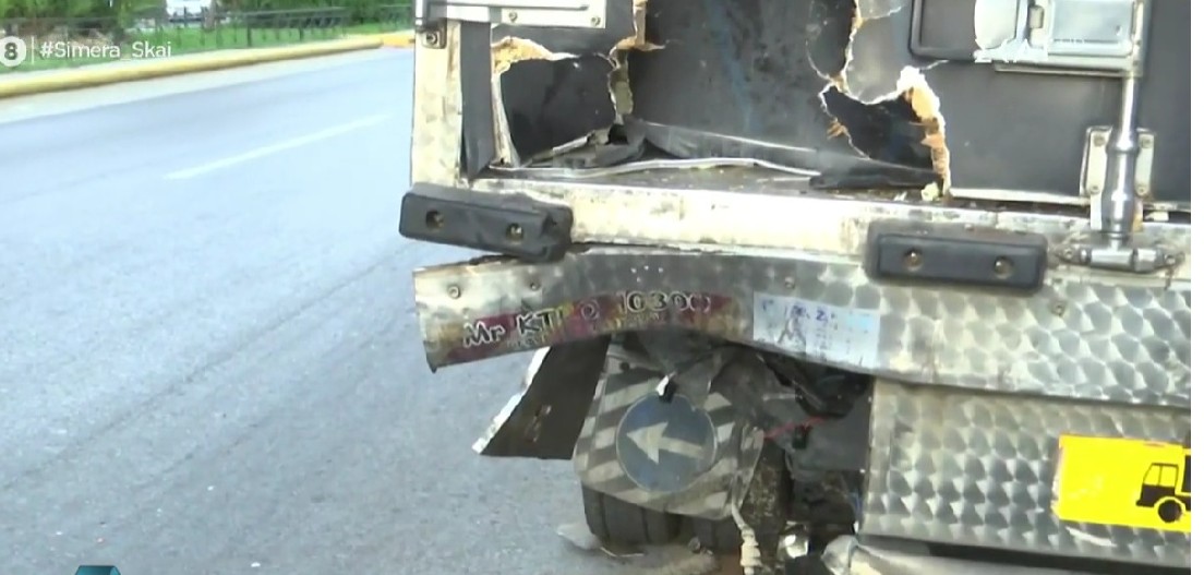 Η μοτοσικλέτα του αστυνομικού «καρφώθηκε» στο φορτηγό