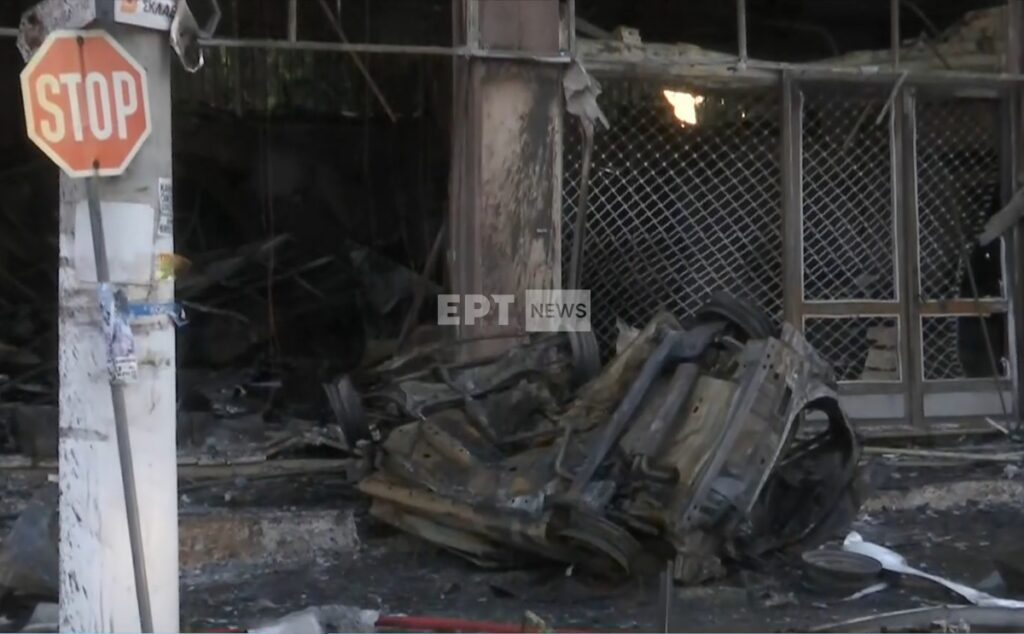Από την πρόσκρουση, σύμφωνα με το ertnews.gr, ξέσπασε μεγάλη πυρκαγιά όπου κατέστρεψε ολοσχερώς το ισόγειο κατάστημα, το αυτοκίνητο αλλά τον πρώτο όροφο του κτιρίου.