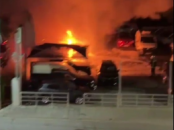 Η φωτιά επεκτάθηκε γρήγορα με αποτέλεσμα να καούν ολοσχερώς πέντε οχήματα και να προκληθούν εκτεταμένες ζημιές σε ακόμη τρία.