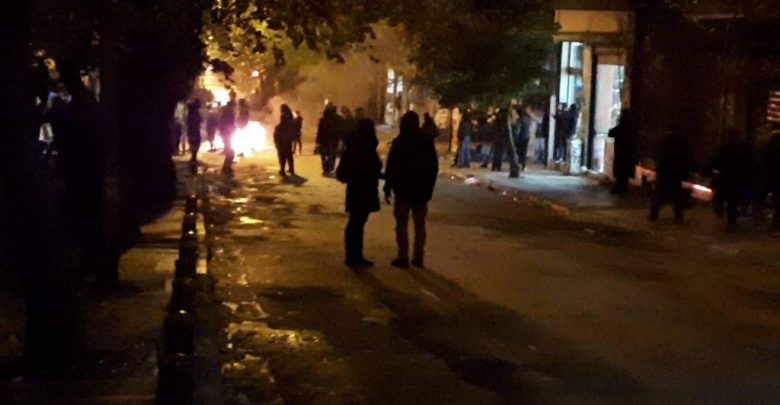 Κάποιοι άναψαν φωτιά μικρής έκτασης σε σκουπίδια και άλλα αντικείμενα, δημιουργώντας ένα αυτοσχέδιο οδόφραγμα.