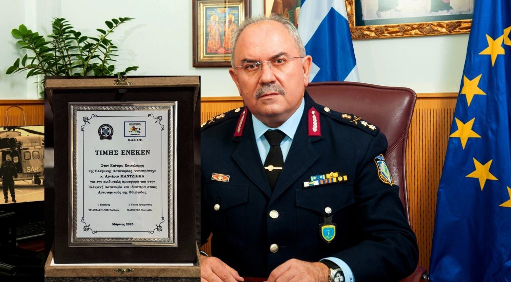 Ο επιτελάρχης της ΕΛΑΣ, Αντιστράτηγος Αστέριος Μαντζιώκας, άφησε πλούσιο έργο στην Αστυνομική Διεύθυνση Φθιώτιδας και αυτό οδήγησε τους συναδέλφους του να τον βραβεύσουν προκειμένου να τον τιμήσουν.